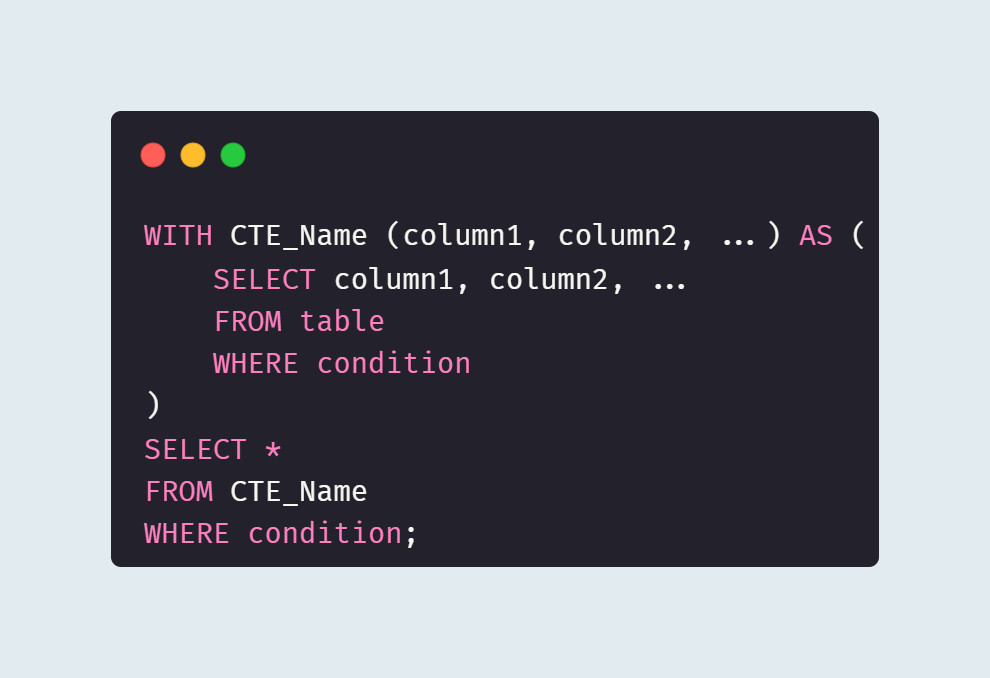 `CTE_Name`은 CTE에 주어진 이름이다. 이 이름을 사용하여 쿼리 내 다른 부분에서 CTE를 참조할 수 있다.