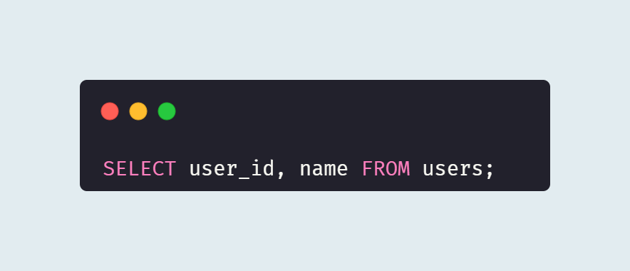 `user_id`, `name`은 칼럼을 나타낸다. `*`을 사용하면 모든 칼럼을 조회할 수 있다.