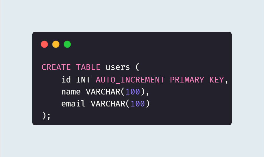 - `AUTO_INCREMENT`를 사용하는 열은 숫자형(예: INT, BIGINT) 데이터 타입이어야 한다