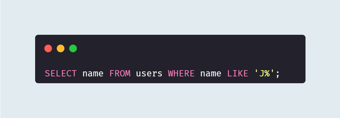 위 예시에선 `J`로 시작하는 문자열을 조회한다