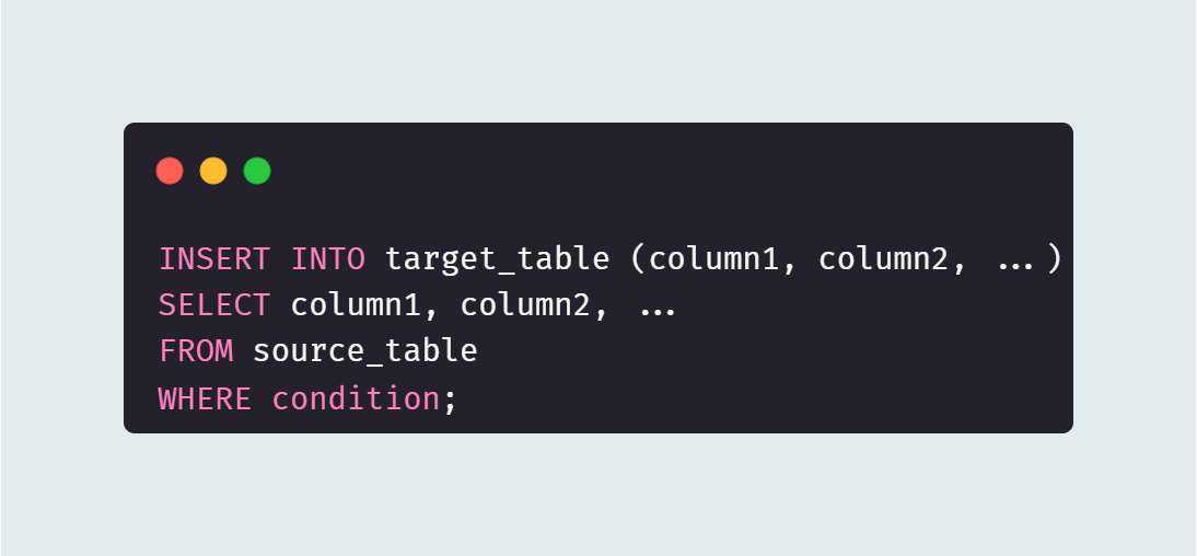 해당 구문은 MySQL에서 기존 테이블의 구조와 데이터를 복사하여 새로운 테이블을 생성하는데 사용된다. 이 구문은 선택된 데이터를 바탕으로 새 테이블을 만들 때 유용하며, 원본 테이블의 일부 열만 선택하거나 데이터를 필터링하여 새 테이블에 삽입할 수 있다.
