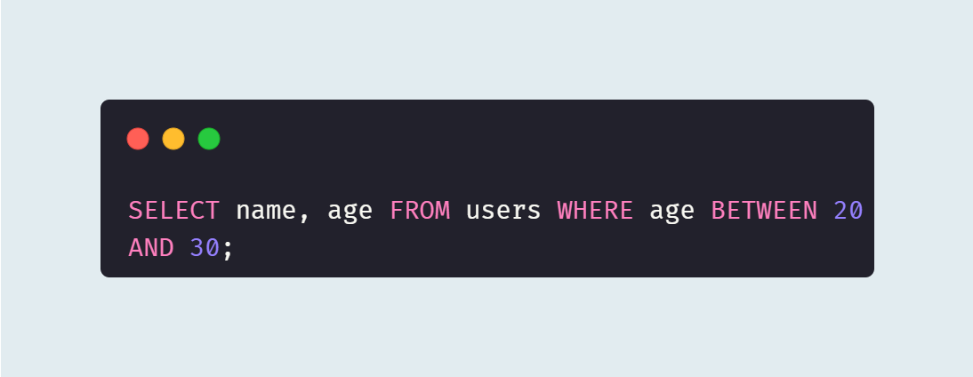 위 예시에선 20과 30 사이의 모든 값을 조회한다.