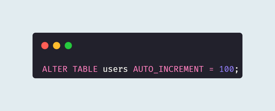 - 아래 명령어로 `AUTO_INCREMENT` 값을 초기화하거나 변경할 수 있다.