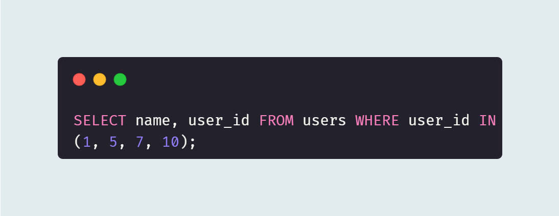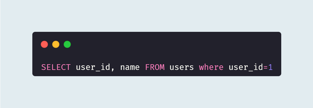 `WHERE`는 조건을 의미한다. 여기선 `user_id`의 값이 1인 것만 조회한다.