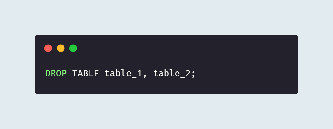 - 외래 키 제약 조건을 가진 테이블 삭제: 외래 키 테이블을 삭제해야 한다. 다음과 같은 방식으로 여러 테이블을 같이 삭제할 수 있다.