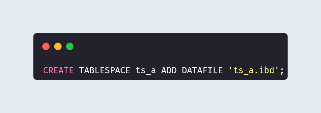 위 쿼리는 `ts_a`라는 테이블스페이스를 생성한다. 생성된 테이블스페이스에 `ts_a.ibd`를 추가한다.