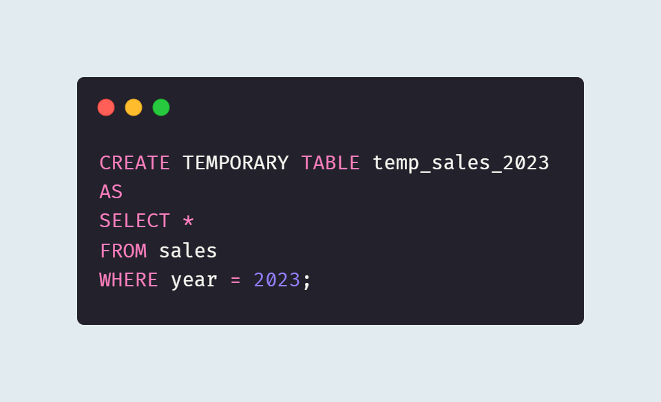 - 복잡한 쿼리 분할: 임시 테이블을 사용하면 복잡한 쿼리를 여러 단계로 나누어 각 단계의 결과를 임시 테이블에 저장할 수 있다. 이를 통해 쿼리의 가독성을 향상시키고, 오류 발생 시 디버깅을 용이하게 한다.