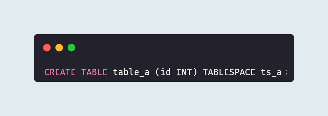 `TABLESPACE ts_a`를 통해 테이블스페이스를 지정하여 테이블을 저장할 수 있다.