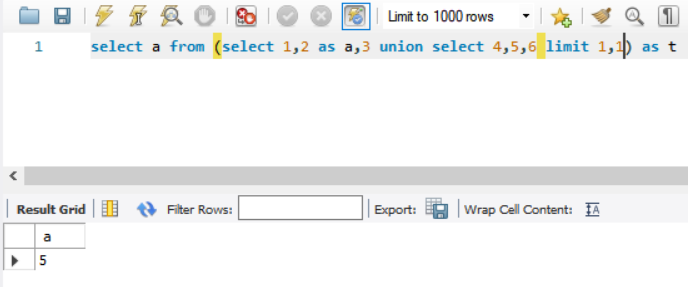 UNION SQL Injection을 한다고 하면, 특정 열의 특정 행 값을 출력해야할 것이다. 그럼 우리는 2열 1행의 `5`를 출력해보도록 해보겠다.