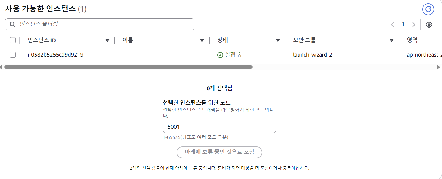 여기서 포트 설정이 또 있는데, 아무런 값을 입력해도 운영이 되길래 당황했었다. 이후에 ec2 대상을 선택하는데 각각에 대해 따로 포트를 설정할 수 있다. 따라서 해당 포트를 대충 입력해도 운영에 지장이 없었던 것이다. 해당 포트는 기본값 개념인 것.