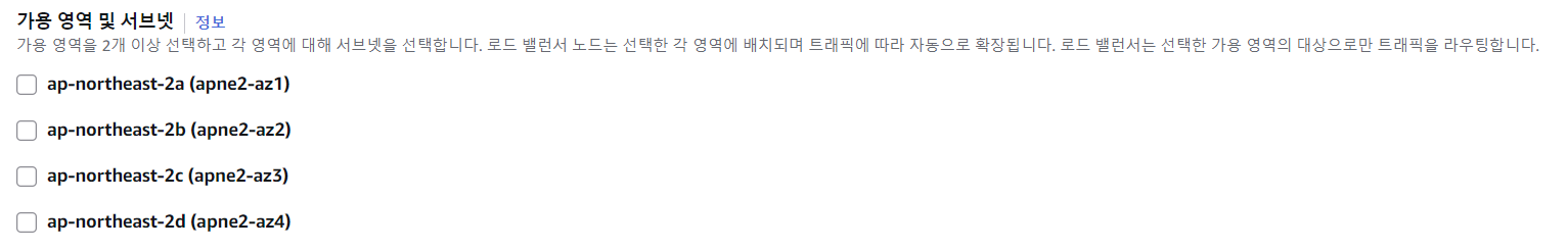 자신이 사용할 ec2가 속한 서브넷을 선택해야 한다. 필자는 ap-northeast-2c를 선택했고, 2개 이상 선택해야해서 아무거나 더 눌러줬다.
