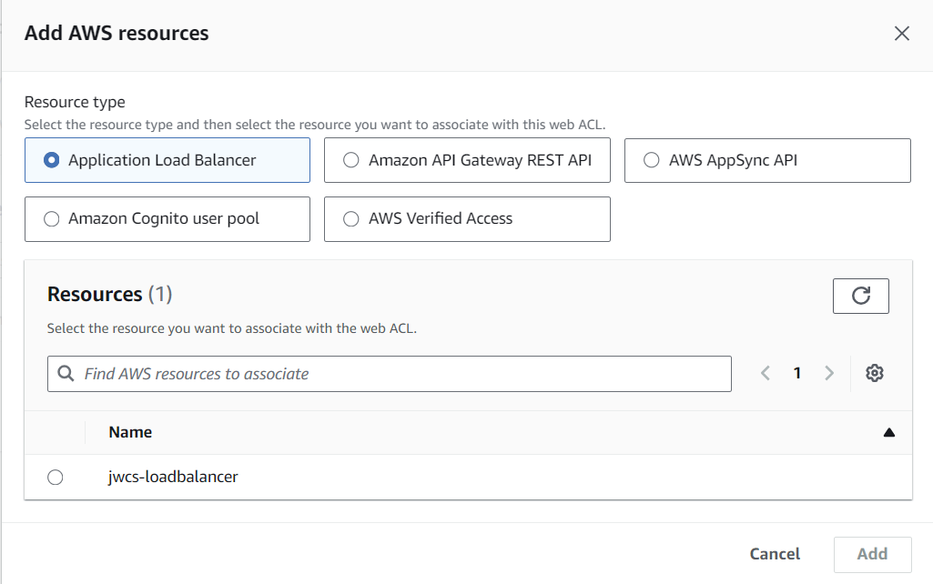 associated AWS resources에서 Add AWS resources를 눌러주자.