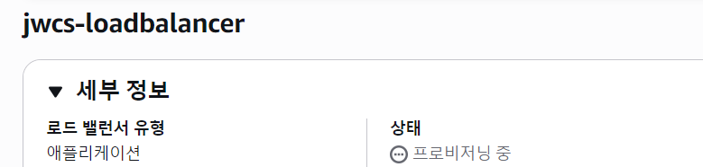 로드 밸런서를 생성해주면 위와 같이 프로비저닝 중이라는 것을 확인할 수 있다. 몇 분이 소요되니 그 동안 waf를 설정해주자.