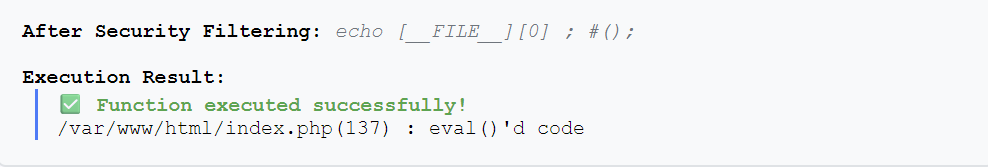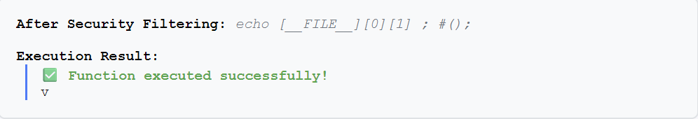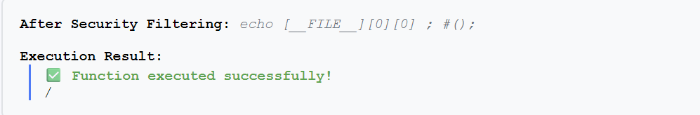 echo '<strong>After Security Filtering:</strong> <span class="filtered">' . htmlspecialchars($cmd) . '</span>' . "\n\n";