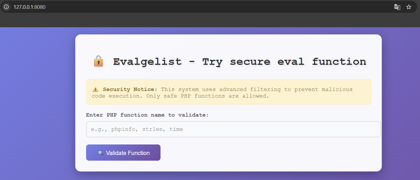 <input type="text" id="code" name="input" placeholder="e.g., phpinfo, strlen, time">