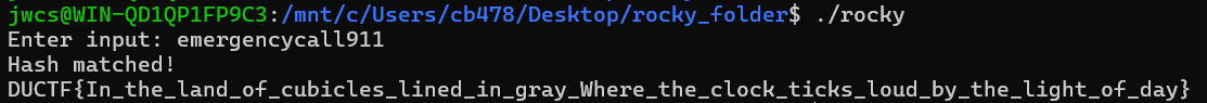 DUCTF{In_the_land_of_cubicles_lined_in_gray_Where_the_clock_ticks_loud_by_the_light_of_day}