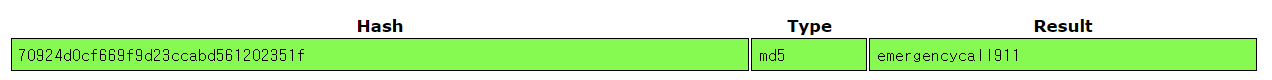 `70924d0cf669f9d23ccabd561202351f`을 크랙해보면 원본 데이터 값을 알 수 있다.