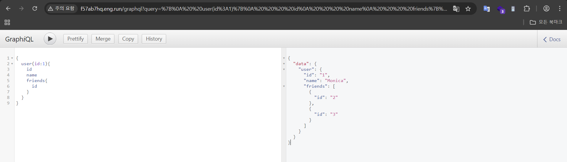그럼 위와 같은 graphql을 사용할 수 있는 페이지가 나온다.