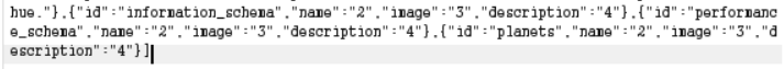 query=SELECT * FROM planets union select schema_name,2,3,4 from information_schema.schemata