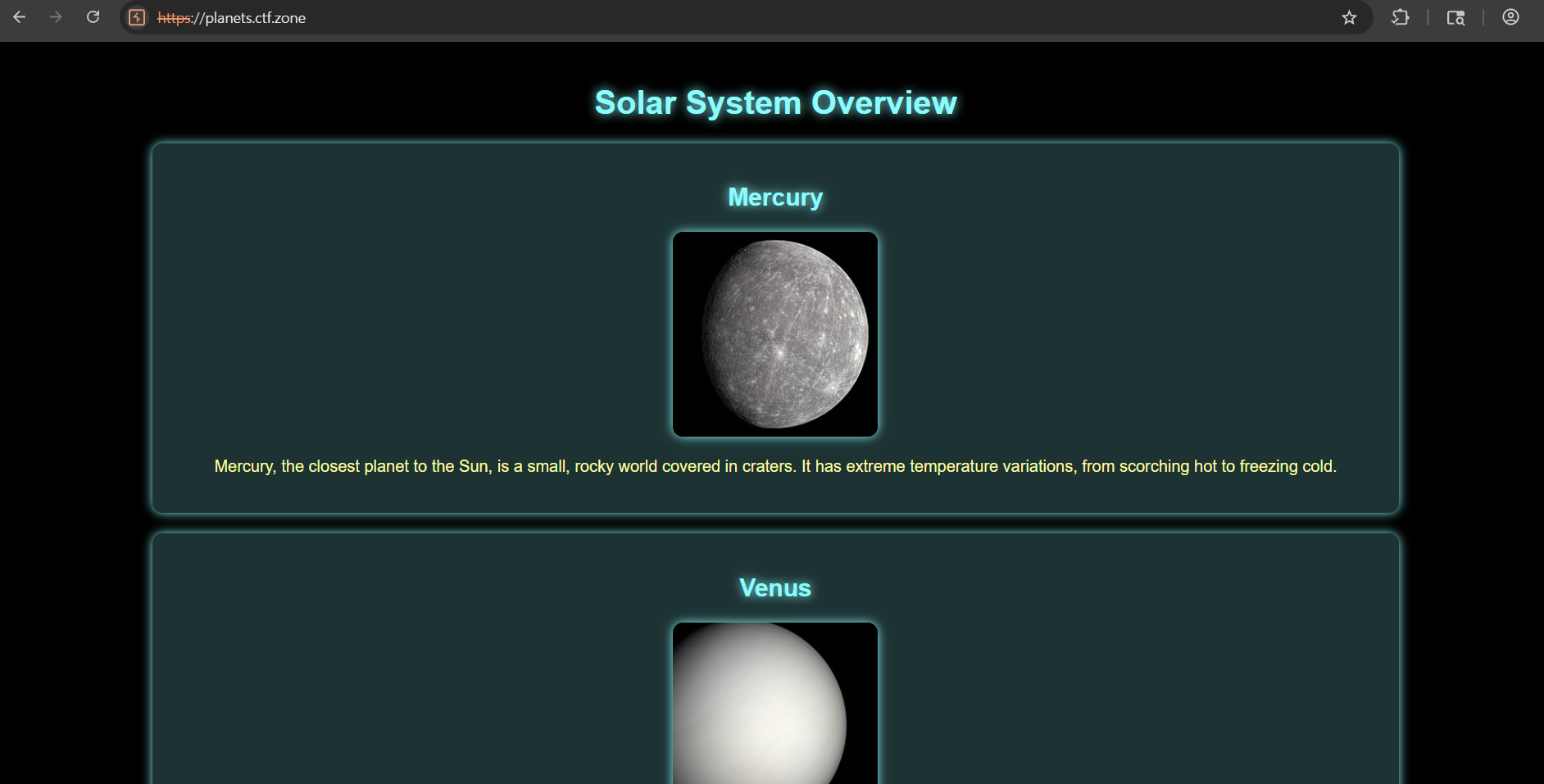 행성들 소개 글이 나열되는 사이트다. 별다른 기능이 없다.