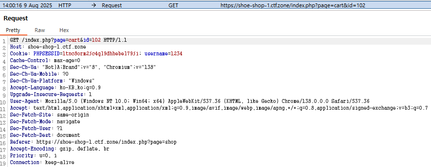 url을 보면 id가 102다. 이 값을 1로 바꾸면 admin의 장바구니 페이지를 볼 수 있을 것이다.