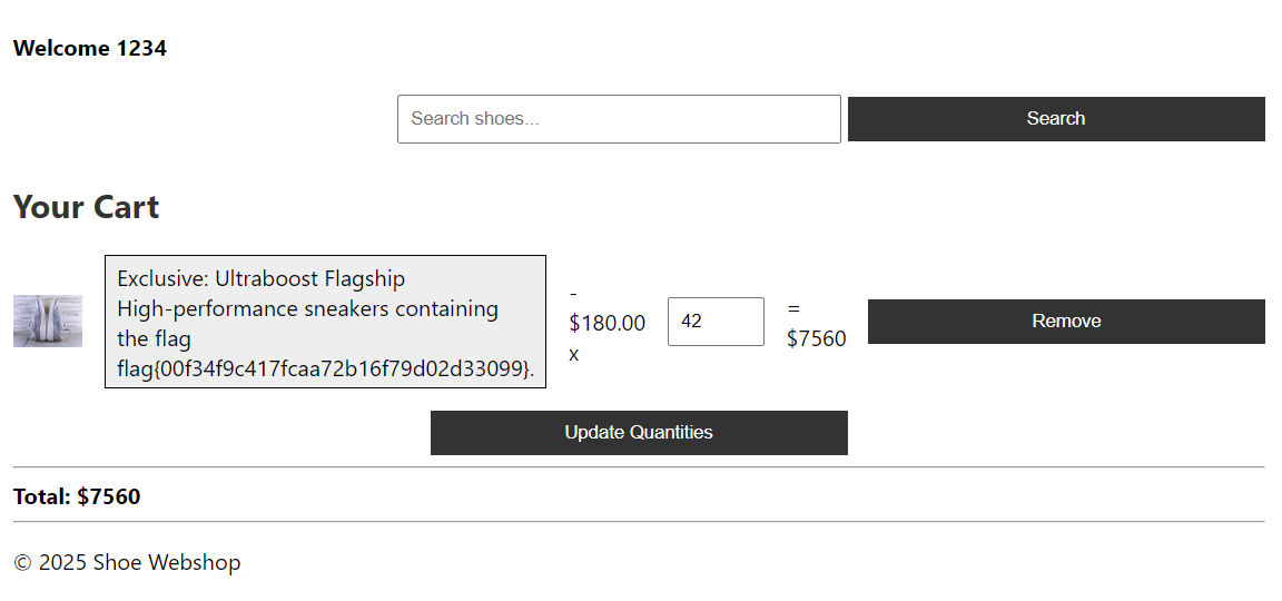 Too bad the admin already put the exclusive shoe in his shopping cart,