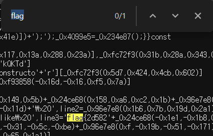 난독화된 자바스크립트 속에서 flag를 구할 수 있는 문제다. 기능 분석 없이 바로 취약점 분석으로 가겠다.