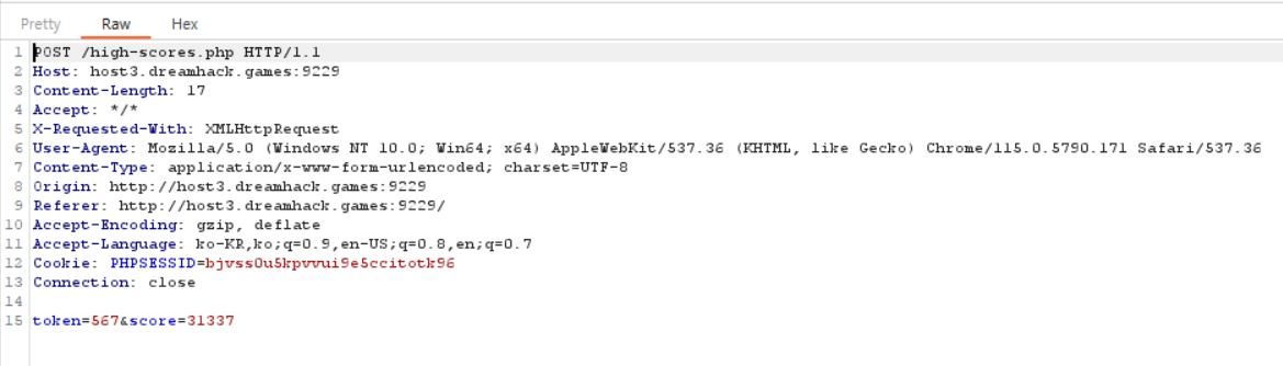 2. 서버에서 토큰을 발행하고, 서버는 해당 토큰과 플레이어의 스코어를 같이 전달받는다. 토큰을 발행하고 일정 시간 이내에 값 전달이 이루어지지 않으면 해당 리퀘스트는 막는 방법을 사용하고있다. 웹 프록시를 이용한 값 변조를 방지하고자 만든 것으로 보여진다.