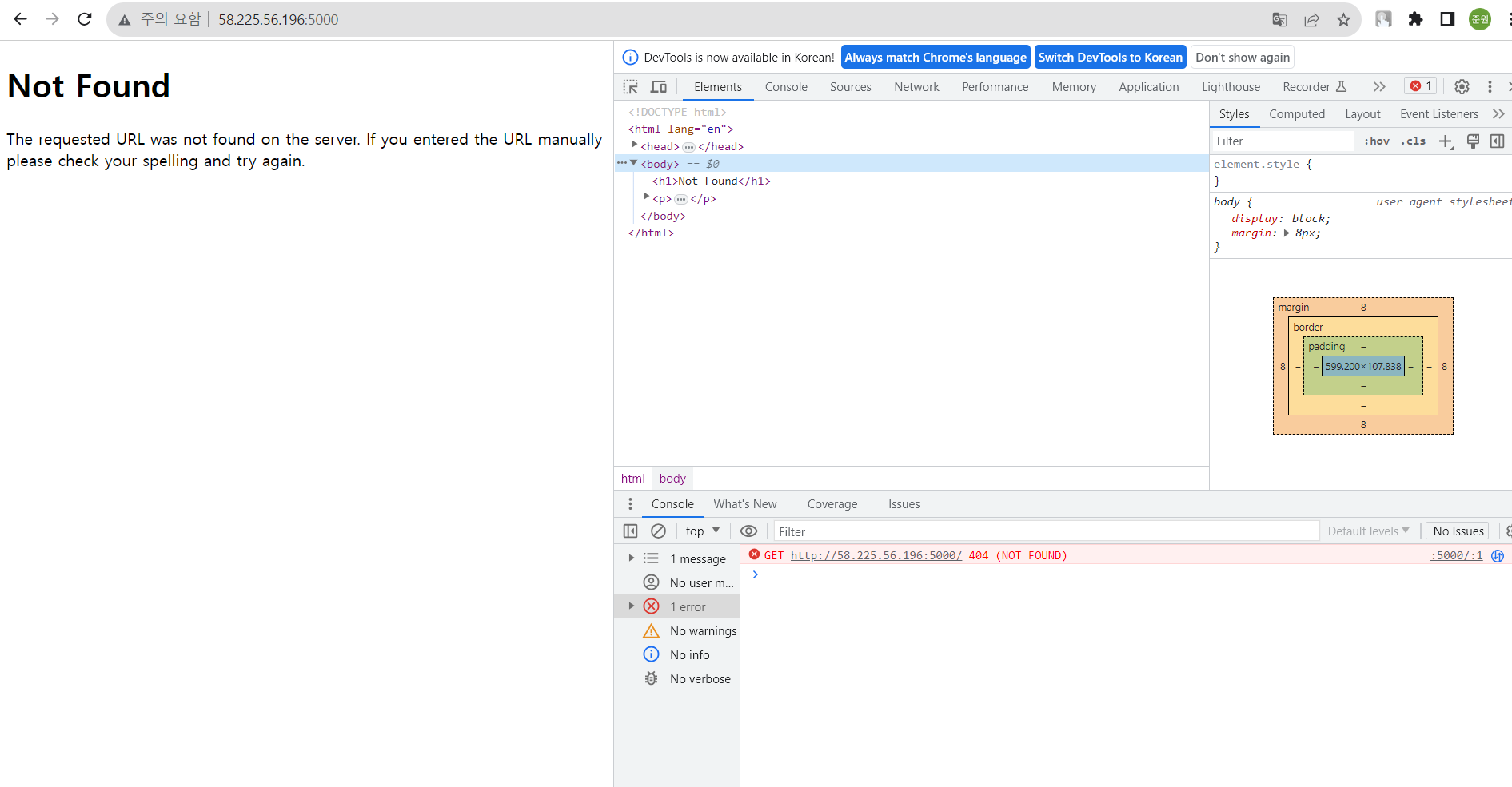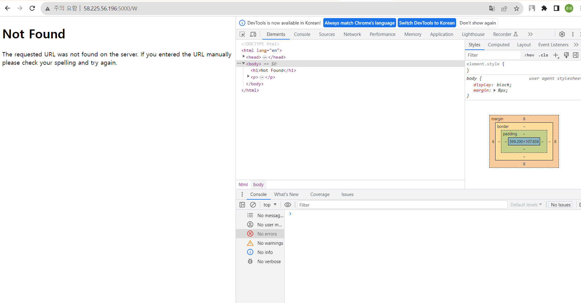 똑같이 404에러가 뜨지만 상태 코드 에러는 따로 나오지 않았다.