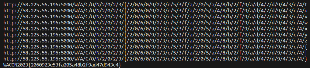 우리에겐 지금까지 WACON2 까지 알려줬다. 이후에 값들을 검색해서 모아보면 flag가 나올것 같다. 그럼 자동화 코드를 만들어보자.