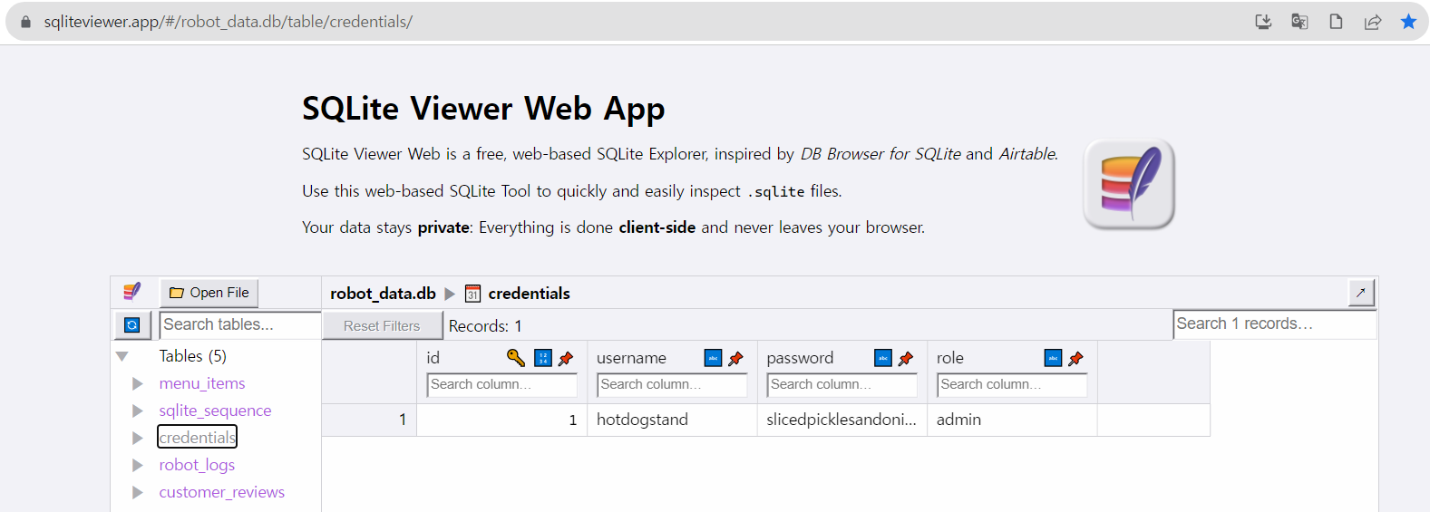 SQLite Viewer Web App SQLite Viewer Web is a free, web-based SQLite Explorer, inspired by DB Browser for SQLite and Airtable. Use this web-based SQLite Tool to quickly and easily inspect .sqlite files. Your data stays private: Everything is done client-sid