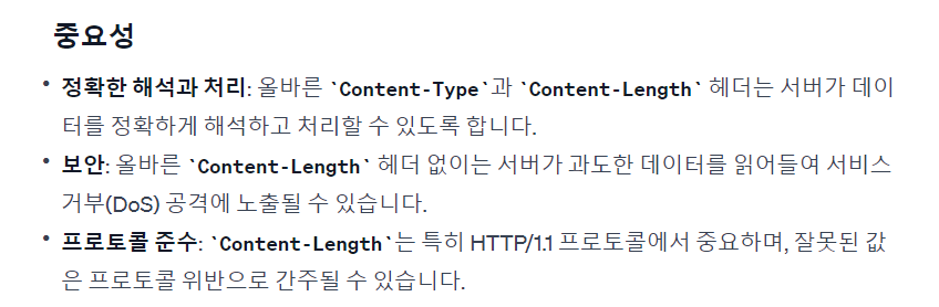 따라서 content-type헤더와 content-length 헤더를 추가하여 패킷을 구성해보면