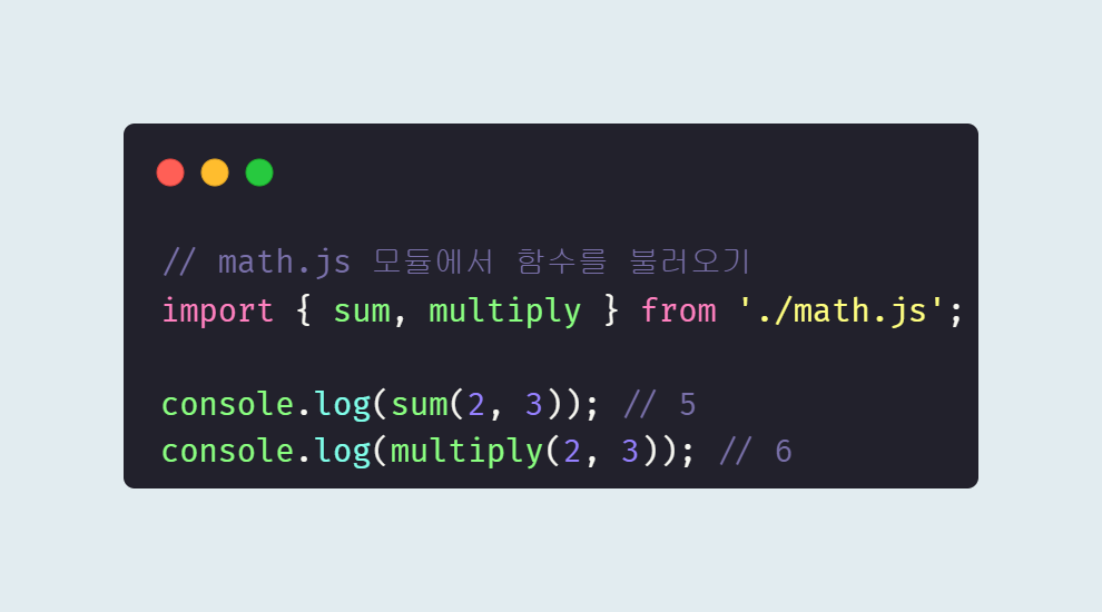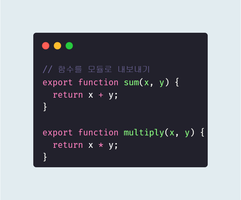 - 단일 값 또는 다중 값 내보내기: ES 모듈은 단일 값 또는 여러 값을 내보낼 수 있으며, 다른 모듈에서 이를 `import`하여 사용할 수 있다.