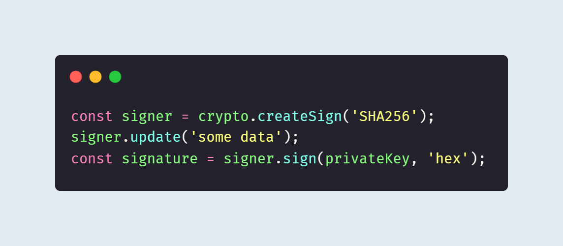 해시 생성: 데이터의 해시 값을 생성한다. 해시 함수는 임의 길이의 데이터를 고정된 길이의 해시 값으로 매핑한다. 일반적으로 메시지의 무결성을 검증하는 데 사용된다.