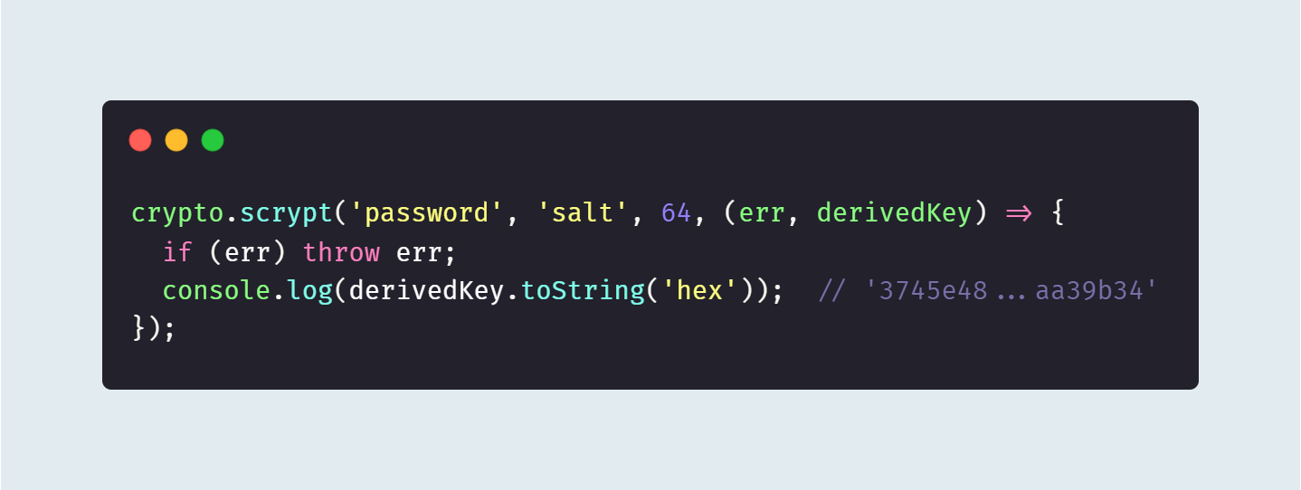 키 파생: 비밀번호와 같은 정보에서 안전하게 키를 생성하는 과정이다. PBKDF2, scrypt와 같은 알고리즘이 사용된다.