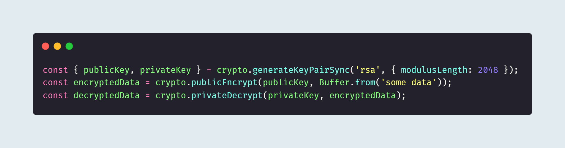 암호화 기능을 제공하여 데이터의 보안을 강화하는 데 사용된다. 이 모듈은 다양한 암호화 기술을 지원하며, 해시 생성, HMAC(Hash-based Message Authentication Code), 공개키/개인키 기반의 암호화 및 서명, 대칭키 암호화 등을 포함한다. crypto 모듈을 사용하기 위해서는 먼저 `require()` 함수를 이용해 모듈을 불러와야 한다.