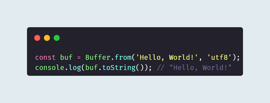 - 버퍼는 고정된 크기를 가지며, Node.js 에서는 `Buffer` 클래스를 통해 이를 구현한다.