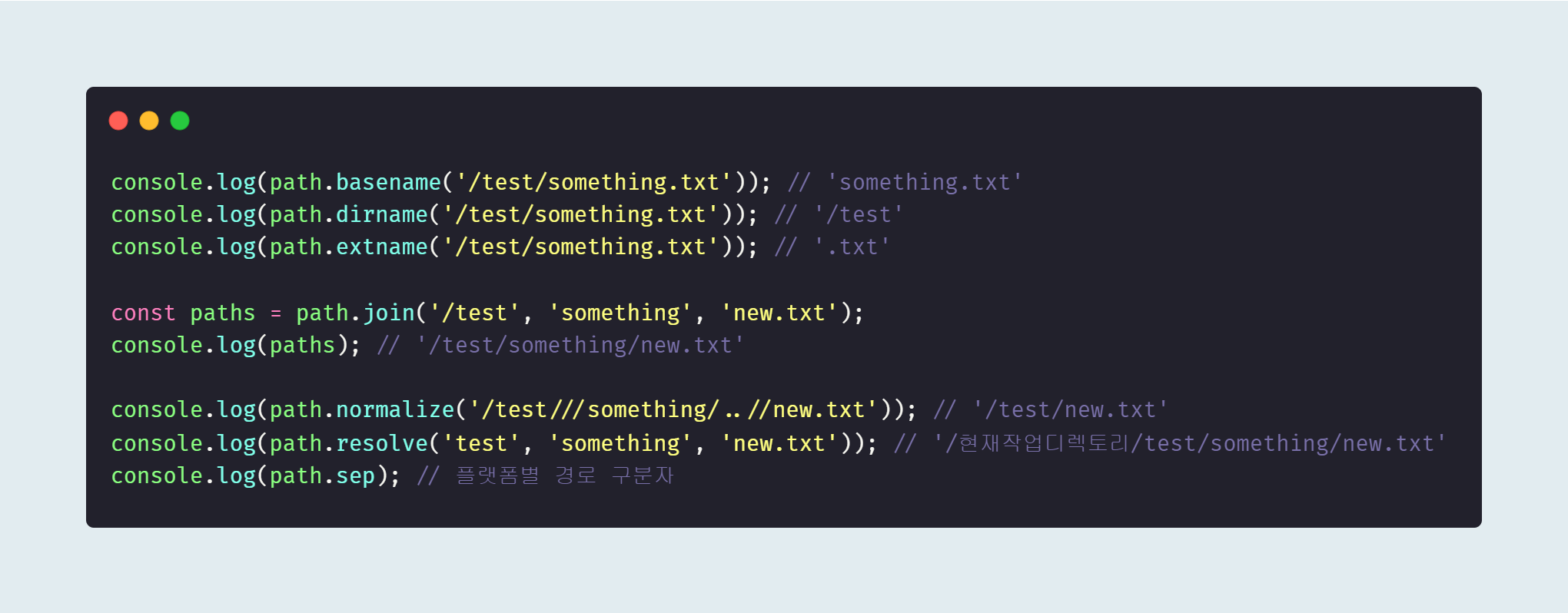 - __dirname: 현재 실행 중인 스크립트가 위치한 디렉토리의 경로를 담고 있는 문자열이다.