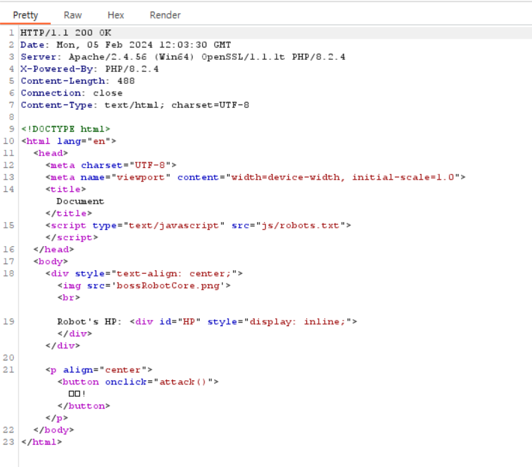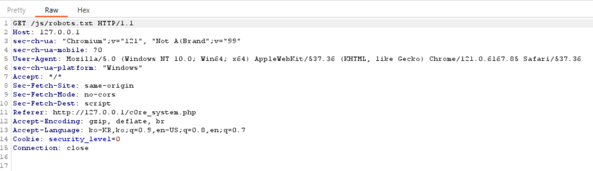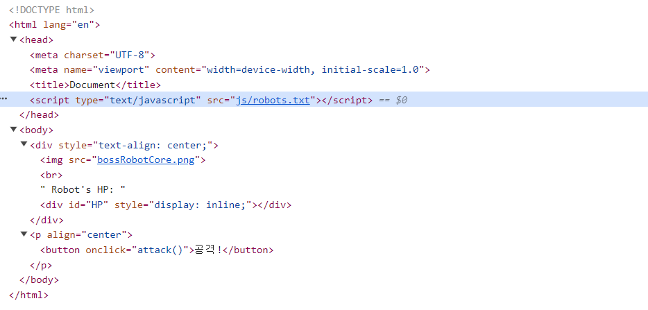 즉, js폴더와 함께 robots.txt가 보이지 않았던 이유는 자바스크립트를 꺼서 사용되지 않았기 때문이다. 그럼 다시 킨 후 해당 파일을 다운로드 받아와서 분석해보자.