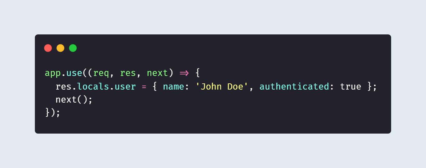 - res.locals: 라우트 핸들러에서 뷰로 변수를 전달할 때 사용한다