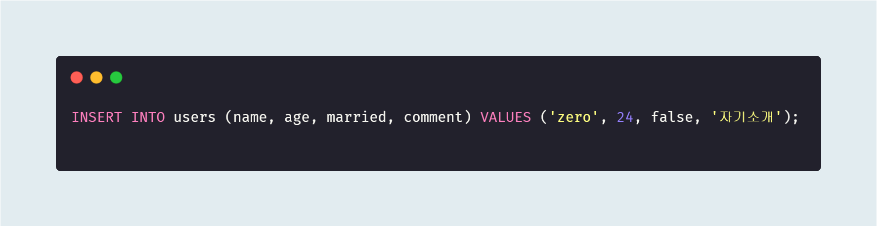 - 사용법: `Insert` 문을 통해 생성할 수 있다
