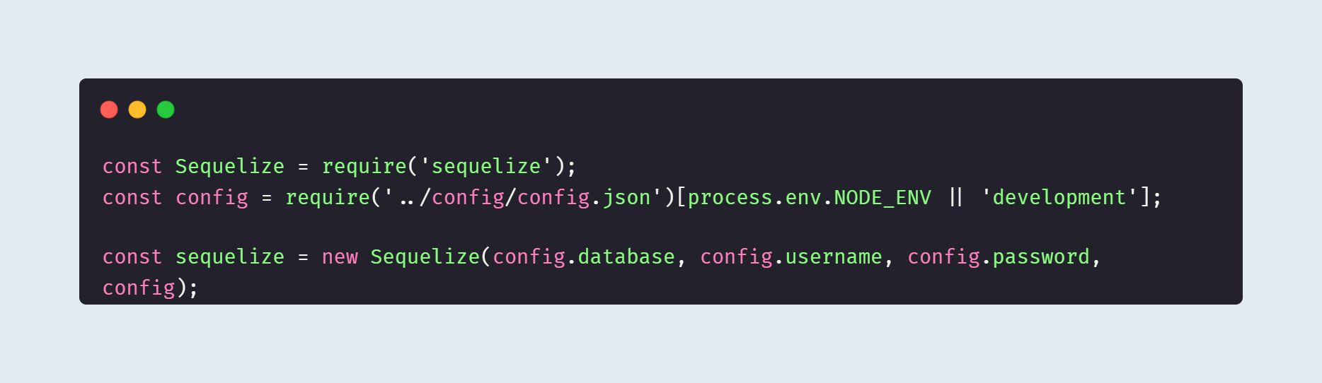 - 설정 파일 구성: 시퀄라이즈 설정 파일인 `config/config.json`을 다음과 같이 작성할 수 있다.