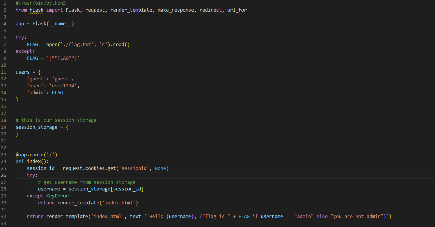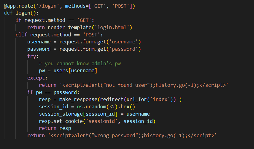 Description 쿠키와 세션으로 인증 상태를 관리하는 간단한 로그인 서비스입니다. admin 계정으로 로그인에 성공하면 플래그를 획득할 수 있습니다. 플래그 형식은 DH{...} 입니다. Reference Background: Cook