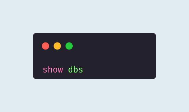 `show dbs`로 데이터베이스 목록을 확인할 수 있다. 방금 생성한 데이터베이스는 없을 것이다. 최소 한 개 이상의 데이터가 있어야 목록에 표시된다.
