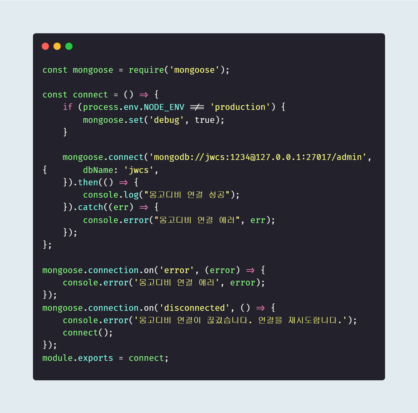 `mongoose.connection.on()`을 사용함으로써 애플리케이션은 다양한 상황에 대응할 수 있다. 대표적으로, 연결이 끊겼을 때 재연결을 시도하는 로직을 구현할 수 있다.