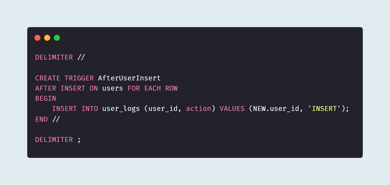 - 자동 실행: 특정 데이터베이스 테이블에 대한 삽입, 수정, 삭제와 같은 이벤트가 발생할 때 자동으로 실행된다.