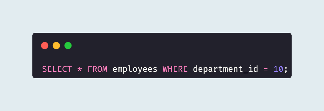 where은 조건을 의미한다. 여기선 `department_id`의 값이 10인 경우를 찾는다.